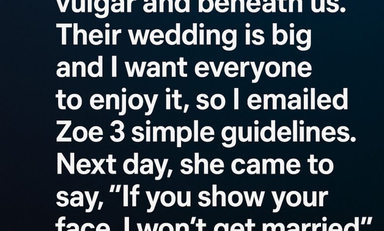 I welcomed my son’s fiancée, Zoe, despite reservations about her personality. Wanting their grand wedding to be harmonious, I emailed Zoe three simple guidelines to avoid misunderstandings. The next day, she arrived upset, threatening to cancel the wedding if I attended. Shocked, I invited her to talk calmly.
