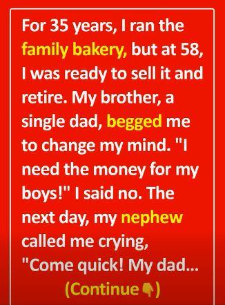 I spent 35 years running our family bakery. It was my whole life, but at 58 I was finally ready to sell it and retire. My brother Michael, who’s a single dad, didn’t take the news well.