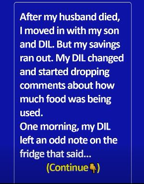 One day, a fridge note outlined her “meals”: 1 cup rice, 1 cup vegetables—no chicken. At dinner, the DIL presented a bill, demanding contributions for groceries. Shocked, the mother discussed it with her son, who admitted financial pressures from tuition, loans, and bills. Sympathizing, she borrowed money from a relative to help, but couldn’t repay it.