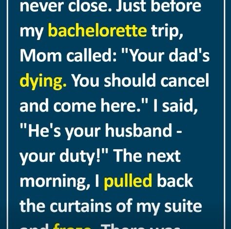 My stepdad and I were never close, and he never treated me like family. Just before my bachelorette trip, Mom called: “Your father’s in the hospital. He’s dying. You should cancel and come here to help me.” I snapped, “He’s your husband — your duty.” Then I flew out.