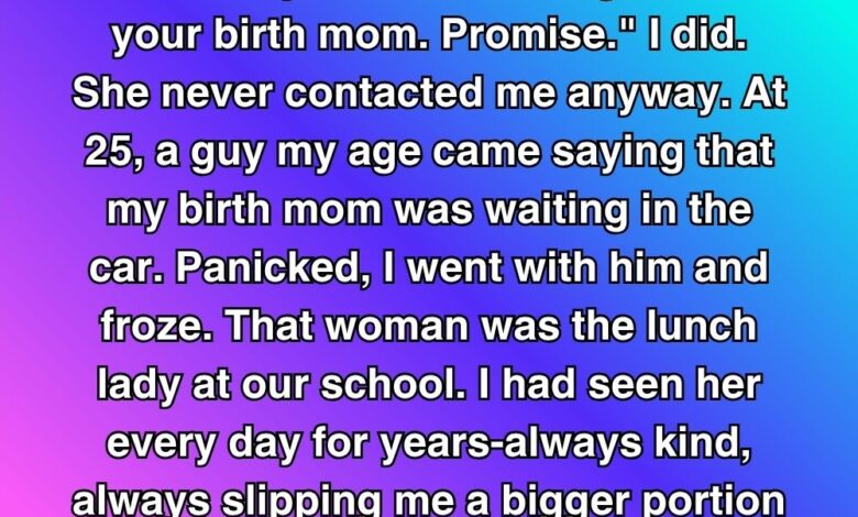 Adopted at two, I was raised by a loving but protective mom who made me promise never to contact my birth mother, claiming she was unsafe. At 25, a man approached me, saying my birth mom, Marta, was waiting outside. Shocked, I recognized her as the kind lunch lady from school, always slipping me extra treats. She’d known me all along but stayed silent, honoring a promise. Now sick, she wanted to connect.