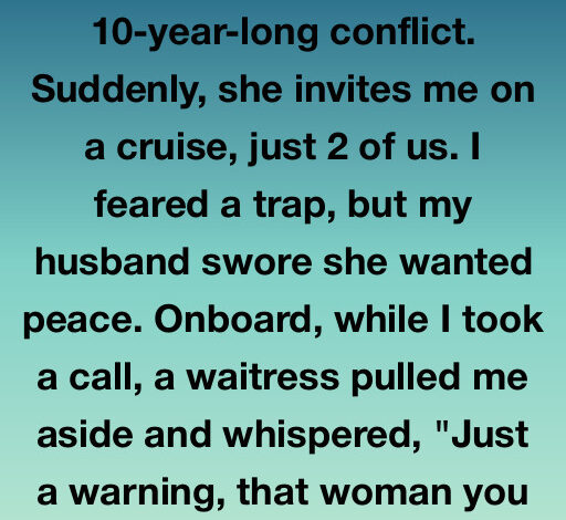 My mother-in-law and I had clashed for years. When she invited me on a cruise “to make peace,” I hesitated. On night one, a waitress warned me: my MIL bribed her to spill a drink on me as a “family joke.” I stayed calm. The next day, she asked the waitress to tamper with my drink. I reported it to security, switched cabins, cut contact. My husband raged—at her, not me.