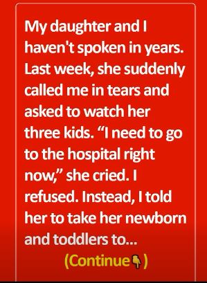 Last week, she called in tears: “Mom, I need to go to the hospital now—I’m in so much pain.” I refused, saying my 70-something husband couldn’t handle her three young kids (including a newborn). I suggested she take them or ask a neighbor. She begged: kids were asleep; she couldn’t drag them to the ER.