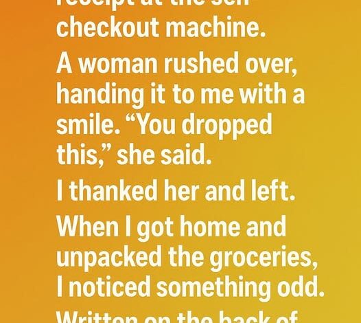 I accidentally left my receipt at the self-checkout machine. A woman hurried over, waving it gently in my direction. “You dropped this,” she said with a kind smile. I thanked her, tucked it into my bag, and headed home, thinking nothing more of it.