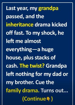 Last year, my grandpa passed, and the inheritance drama kicked off fast. I’m Richard, 33, and to my shock, he left me almost everything—a huge house worth nearly $900K, plus stacks of cash and valuables adding up to over $250K.