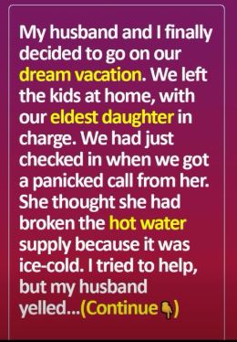 She thought she had broken the hot water supply because it was ice-cold. I tried to help, but my husband yelled at her to manage on her own, and slammed the phone down, while she was sobbing. I was furious and asked my husband how a teenager could handle a plumbing or electrical issue.